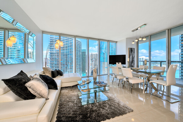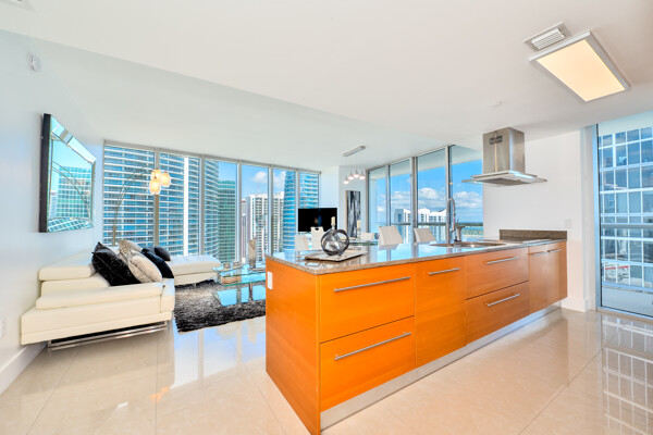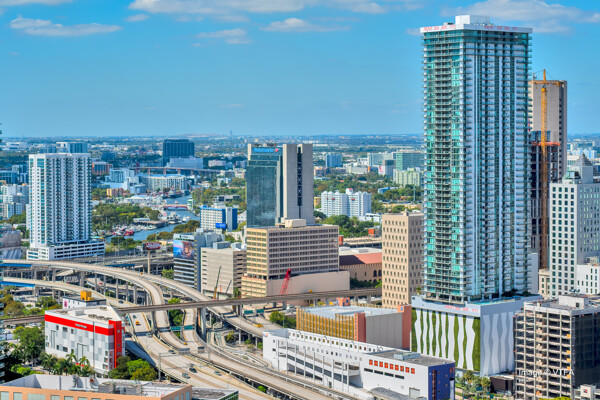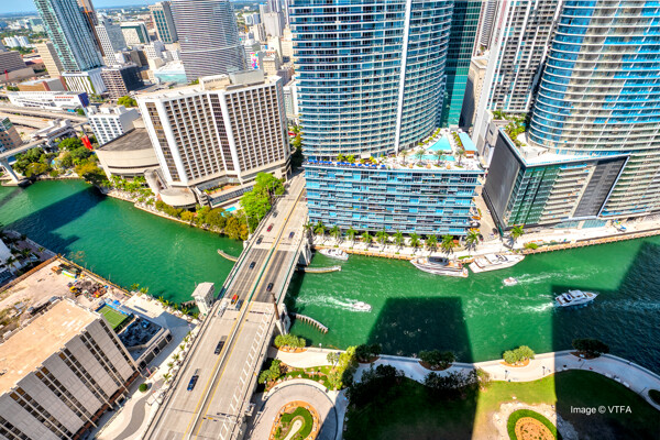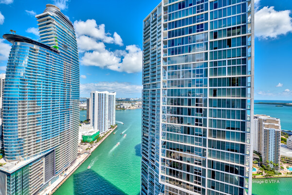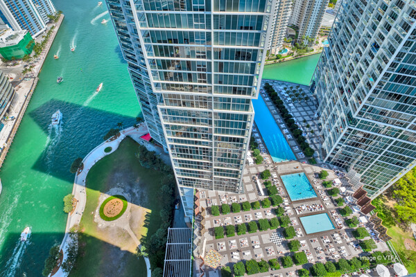 The Icon Brickell complexis an urban development center in Miami, Florida, United States. It is located on the south side of the Miami River in Downtown's northern Brickell Financial District. The complex consists of three skyscrapers and the Icon Brickell Plaza, connecting the towers at their base. The first two towers, the Icon Brickell North Tower and Icon Brickell South Tower, are twin buildings. Each one is 586 feet (179 m) tall with 58 floors. The third phase of the complex is the W Hotel Tower, which is 500 feet (150 m) tall with 50 floors. The complex is on the east side of Brickell Avenue between Southeast 5th and 6th Streets. The architectural firm Arquitectonica worked on the project, while the design was done by Philippe Starck and John Hitchcox's design company.